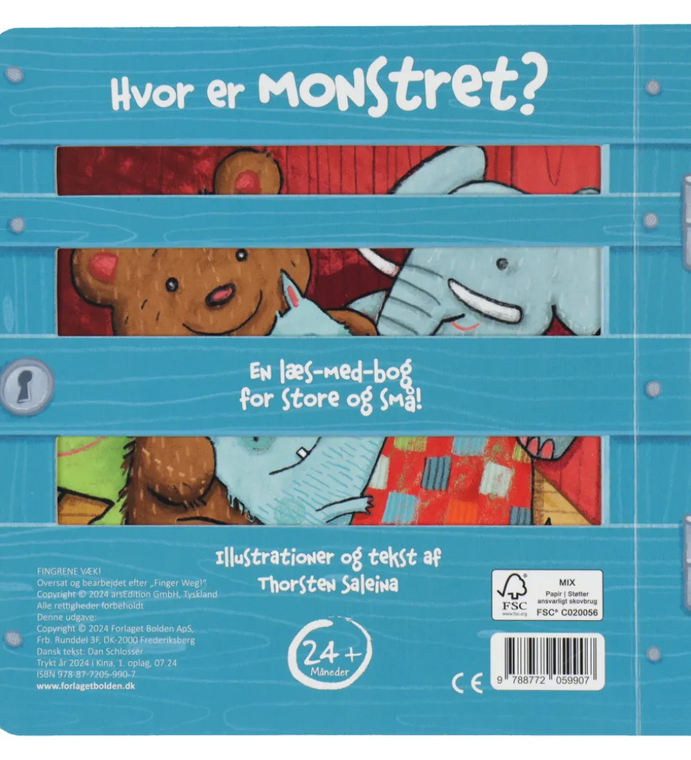 Forlaget Bolden bogen en en sød lille fortælling på rim, hvor barnet skal følge det lille, uartige monster, som tager på eventyr og forstyrrer alle omkring det. Bogen har kraftige, holdbare papsider med kighuller, og den kan blive bladret i af små fingre og læst igen og igen.