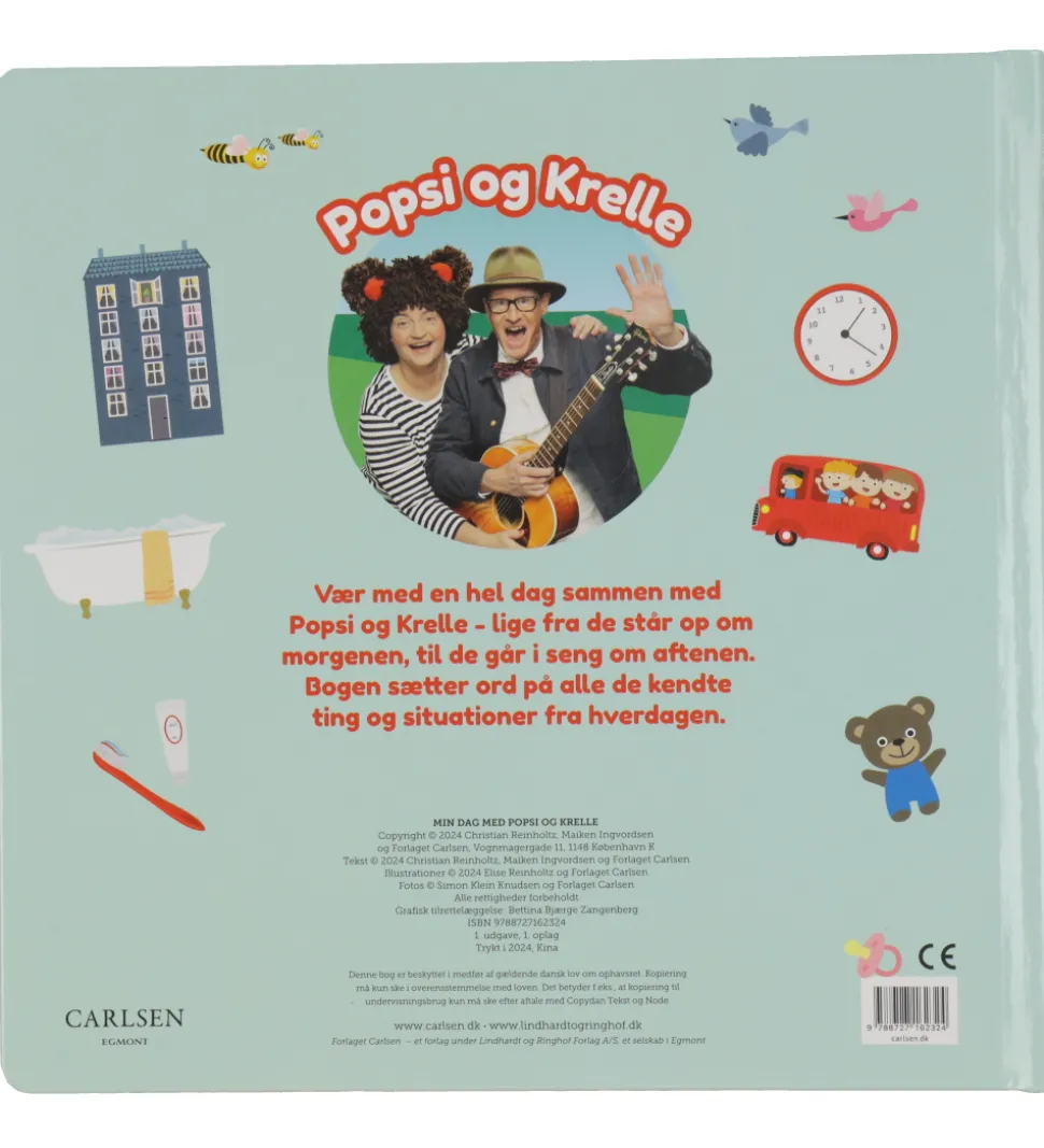 Forlaget Carlsen billedbogen handler om de populærer ikoner Popsi og Krelle, og hvordan de får sat ord på alt det genkendelige og rutiner fra den lilles hverdag, som f.eks. at spise morgenmad, børste tænder, komme i bad og meget mere.