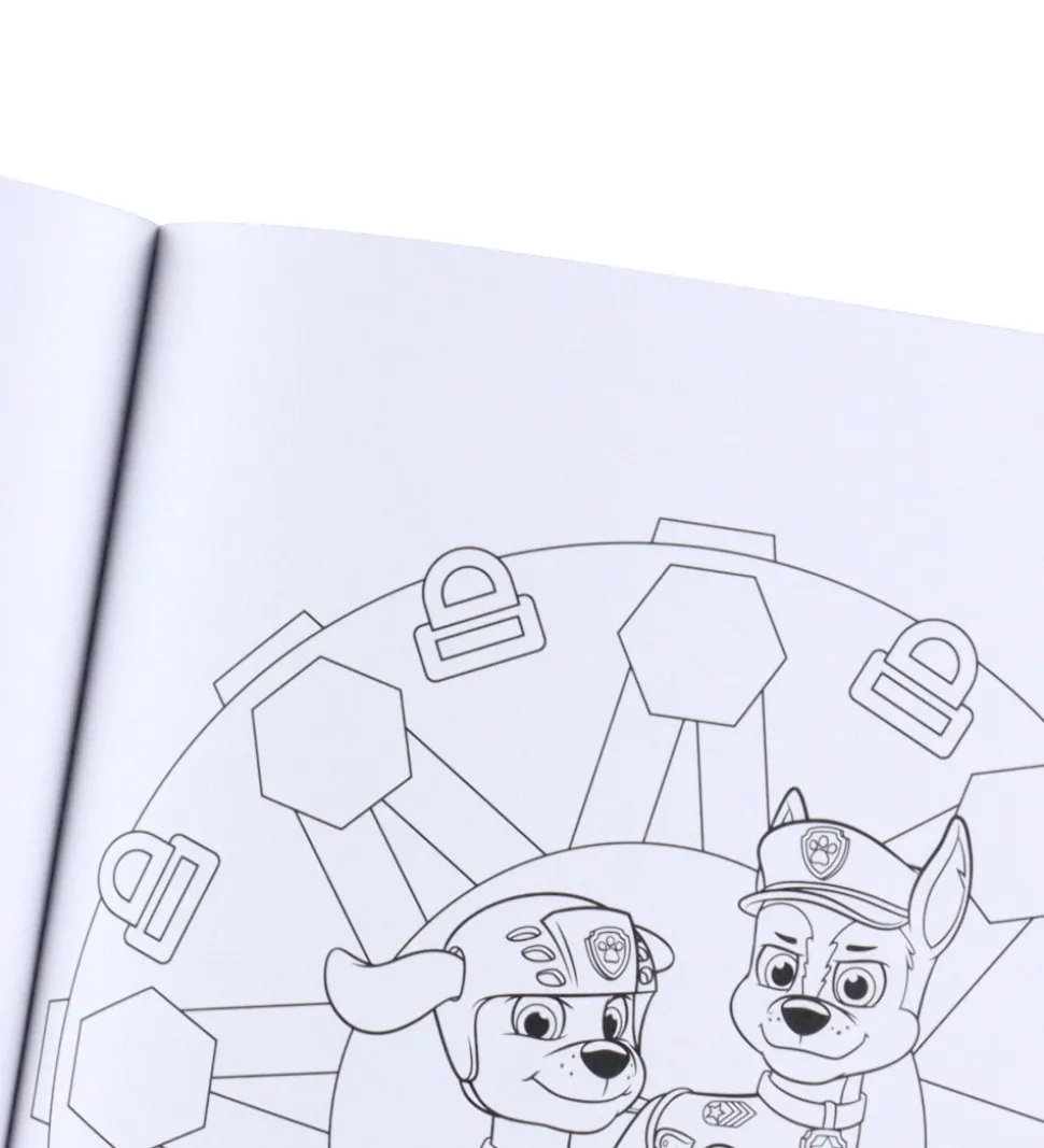 Sej Karrusel Forlag malebog med Paw Patrol, som ender med at blive et farverigt kunstværk.