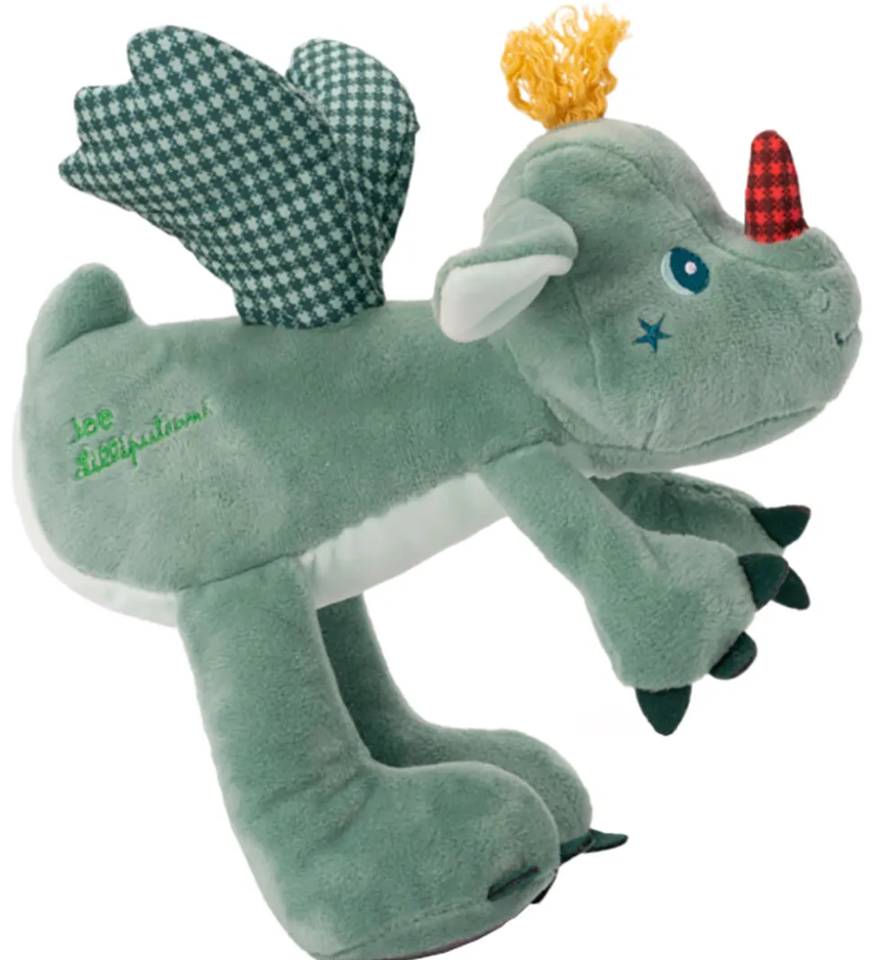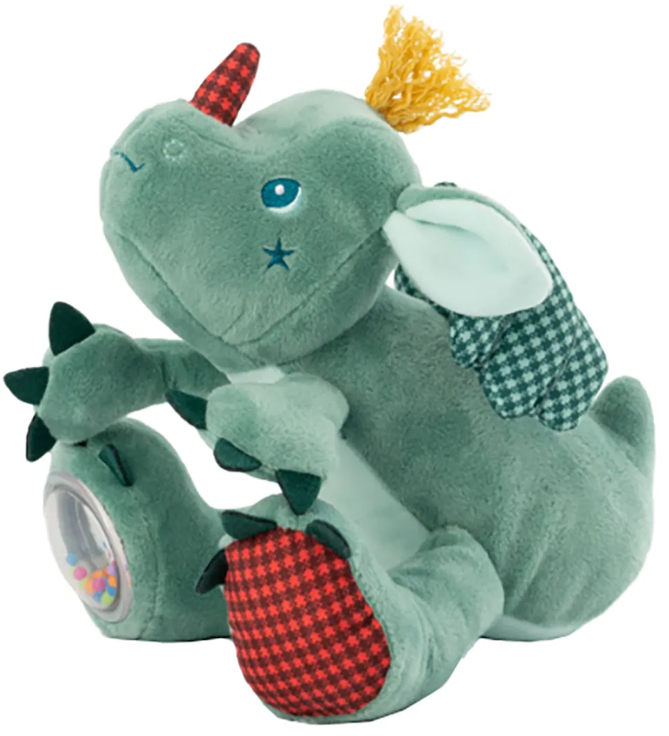 Spændende Lilliputiens aktivitetsbamse i form af dragen Joe i grønne farver.