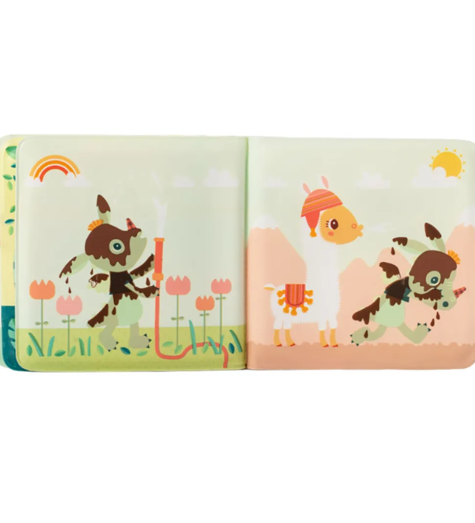 Lilliputiens badebogen er i et vandtæt materiale og fuld af sjove detaljer. Joe er fuld af mudder, med det ændrer sig på magisk vis, når badebogen kommer i kontakt med vand, der er varmere end 32 grader.
