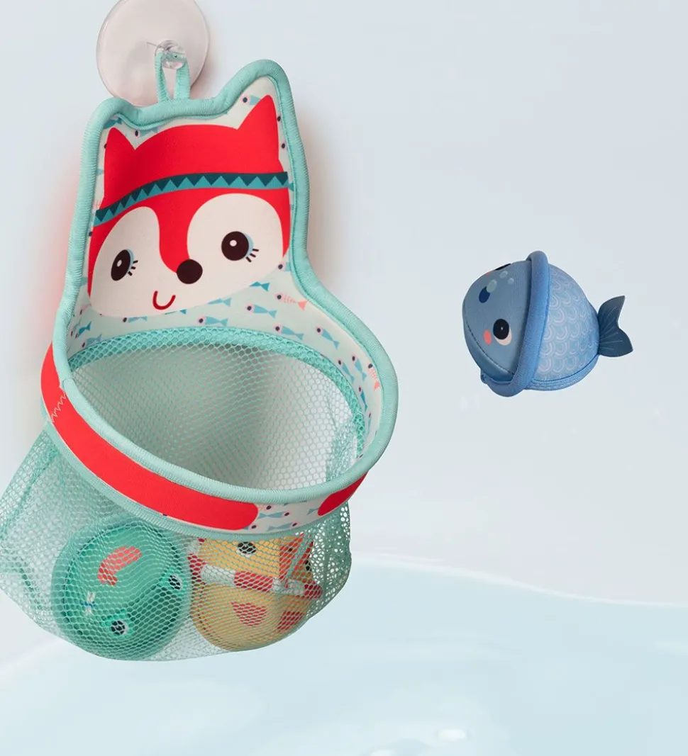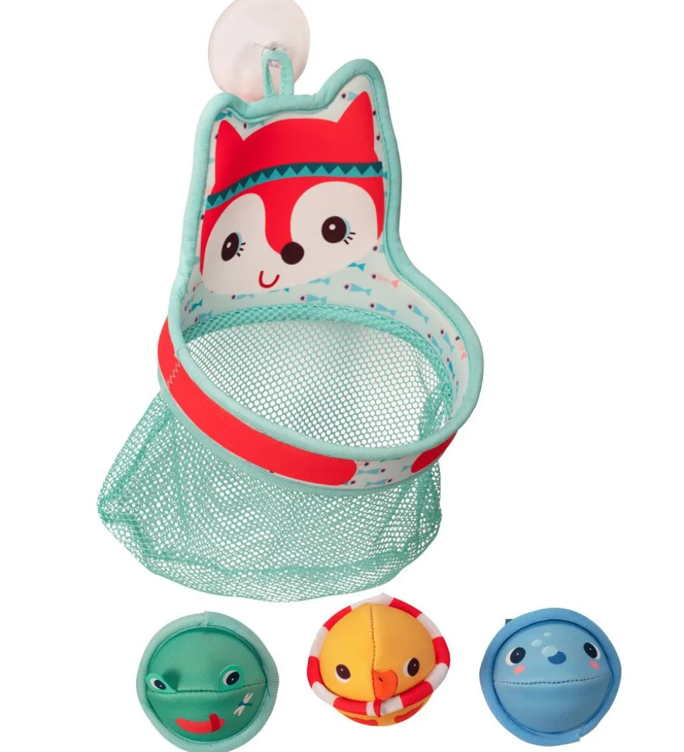 Lilliputiens badelegetøjet er perfekt til de små, som stadig har brug for en distrahering i badet. Kurven har en sugekop i toppen, som kan sættes på siden af badet, og derefter gælder det om at kase boldene i kurven.