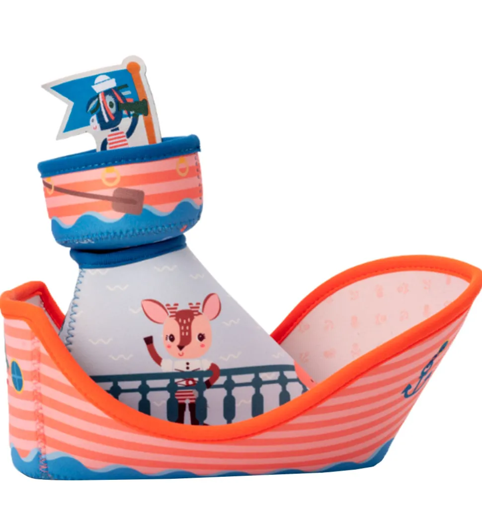 Sjovt Lilliputiens badelegetøj i form af løven Jacks piratskib.