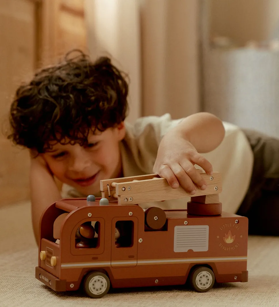 Flot Little Dutch brandbil i rød. Little Dutch brandbilen har en udfoldelig stige, fine figurer og andet spændende tilbehør, der gør legen ekstra sjov. Perfekt som gave eller til samlingen på børneværelset.