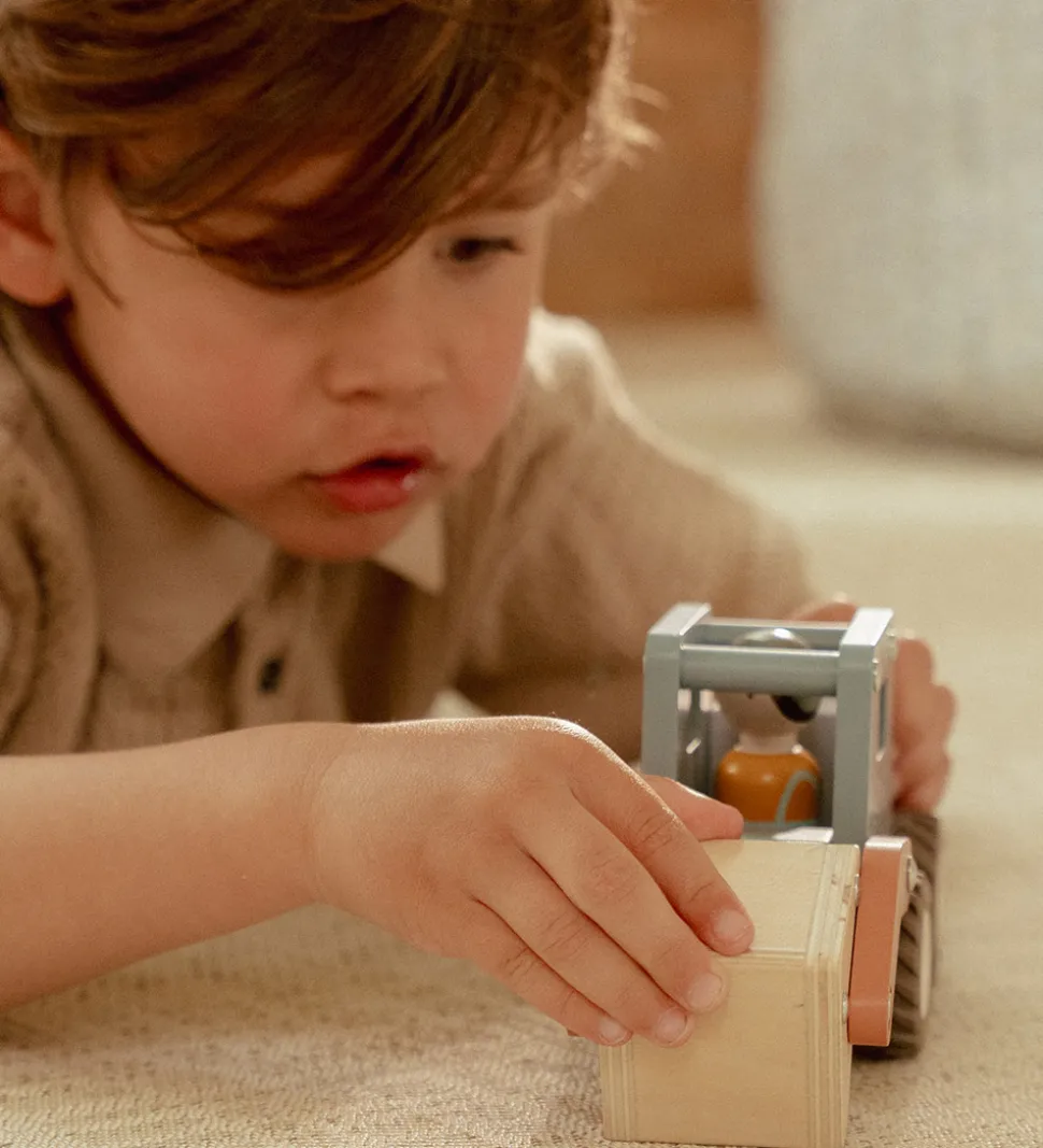 Flot Little Dutch gravko blåt træ med orange detaljer. Little Dutch gravkoen kommer med en fin, lille træfigur. Den er designet med 4 robuste gummihjul og bevægelige funktioner, der vækker fantasien.