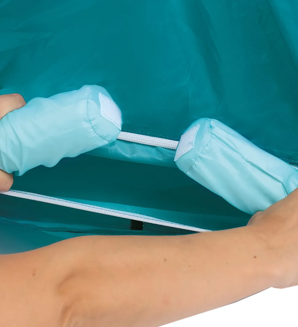 Ludi skyggeteltet slåes let op, ved at tage den ud af den medfølgende taske og derved popper teltet op af sig selv. Teltet er fremstillet i et let materiale, så det er nemt at have med på tur.