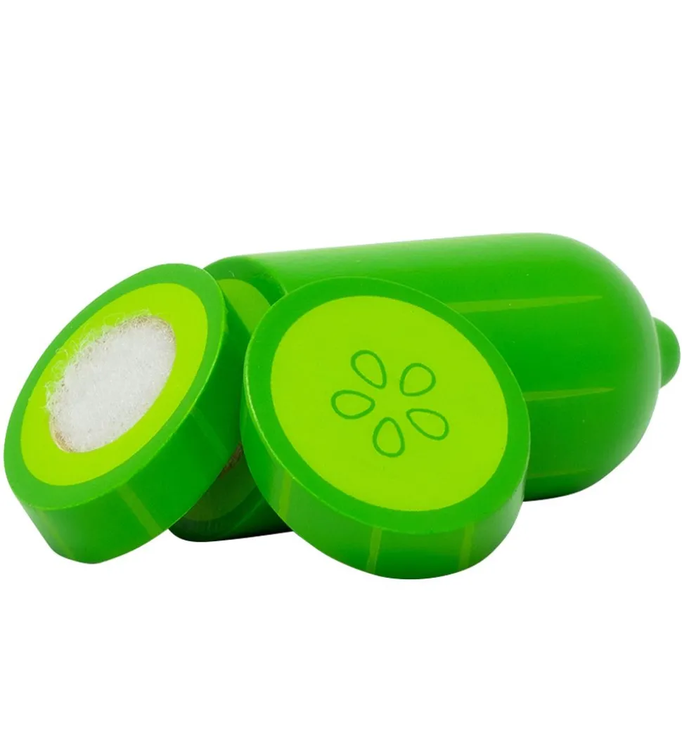 Underholdende MaMaMeMo legemad bestående af en agurk i tre stykker.