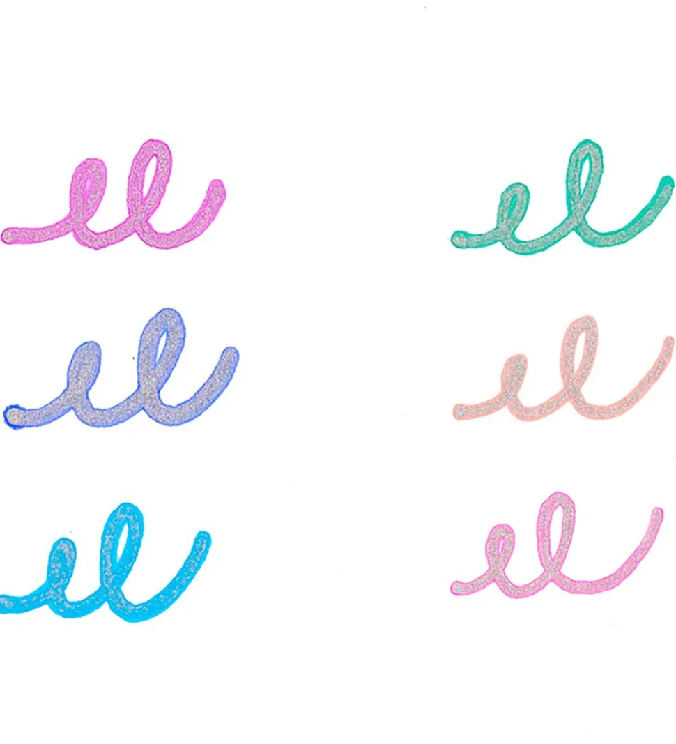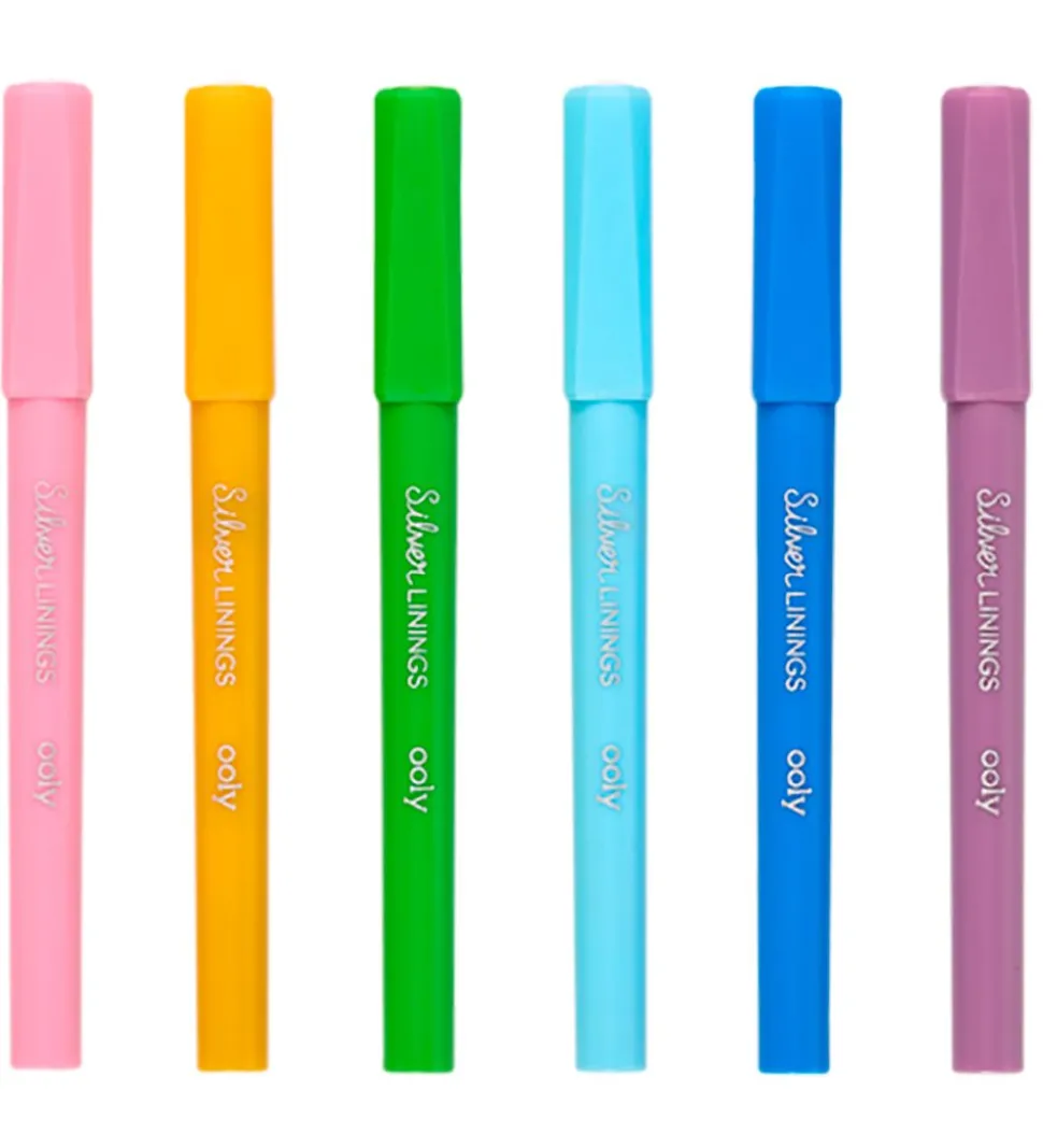 Fine Ooly tuscher i 6 flotte, matalliske farver i pink, orange, grøn, blå, navy og lilla.