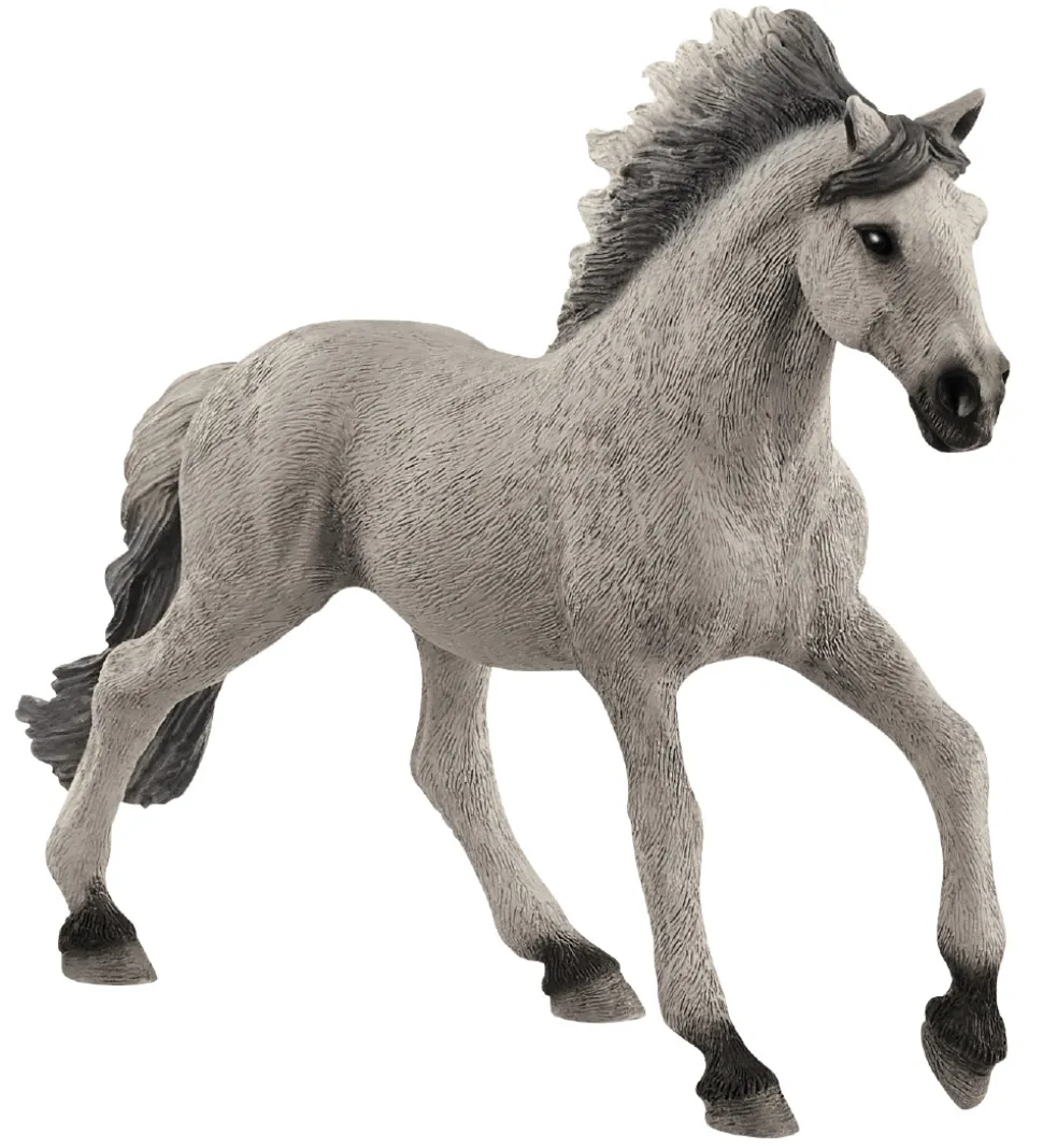 Spændende Schleich hingst i grå nuancer, med en flot manke og hale.