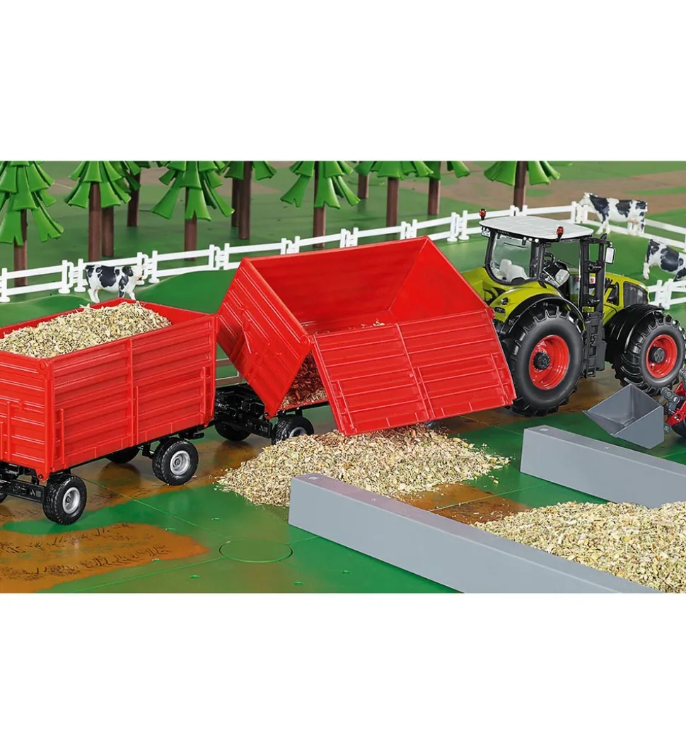 Siku anhængeren har 4 hjul, og den kan hægtes bag en traktor. Anhængeren kan tippes til den ene side, hvor siden åbnes og indholdet i traileren kan hældes ud. Anhængeren er lavet i størrelsesforholdet 1:32, og den ligner en ægte trailer.