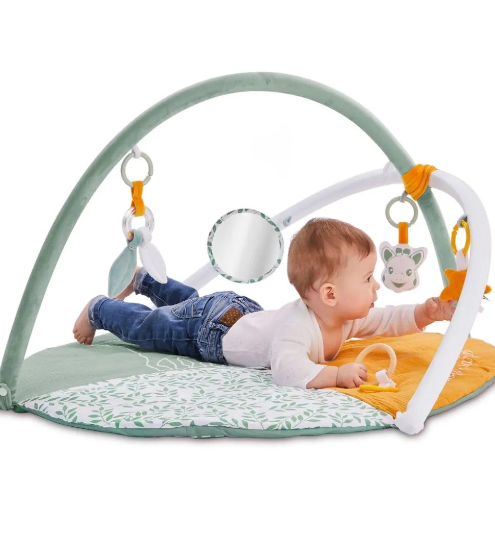 Godt Sophie la Girafe aktivitetstæppe i grøn, hvid og gul.