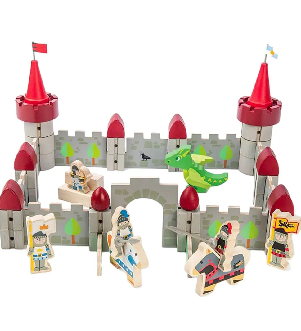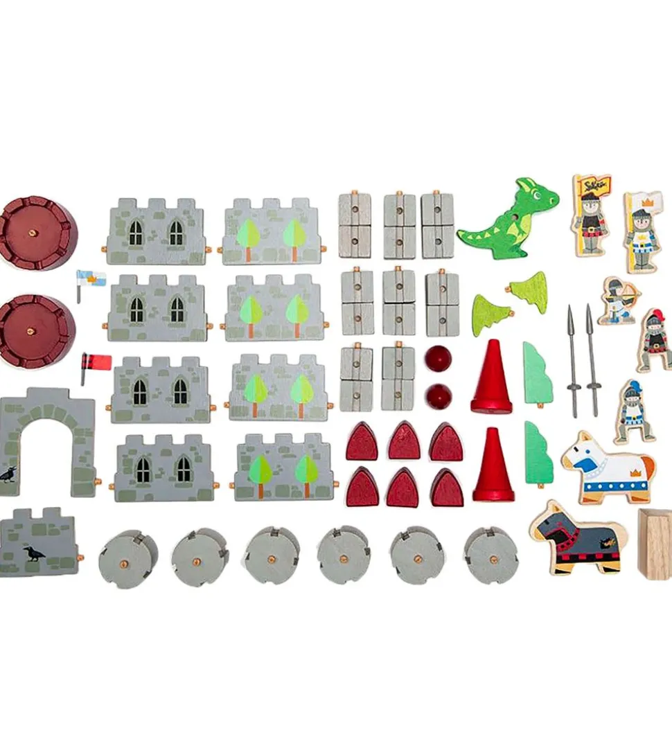 Tender Leaf trælegetøjet består af 59 dele til at bygge en stor ridderborg med 5 riddere, 2 heste samt 1 drage. Trælegetøjet byder på mange timers underholdende leg, og det er med til at stimulere og udvikle barnets fantasi, finmotorik, sprog og kommunikation.