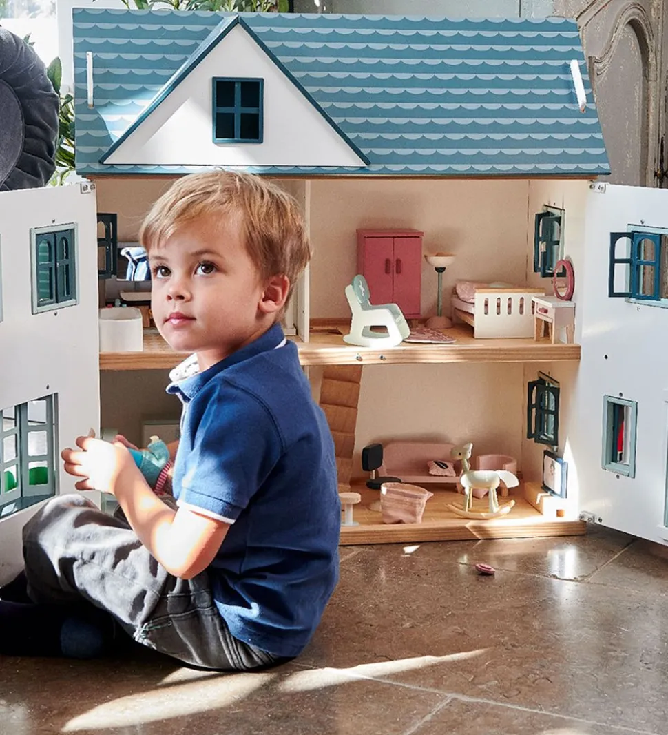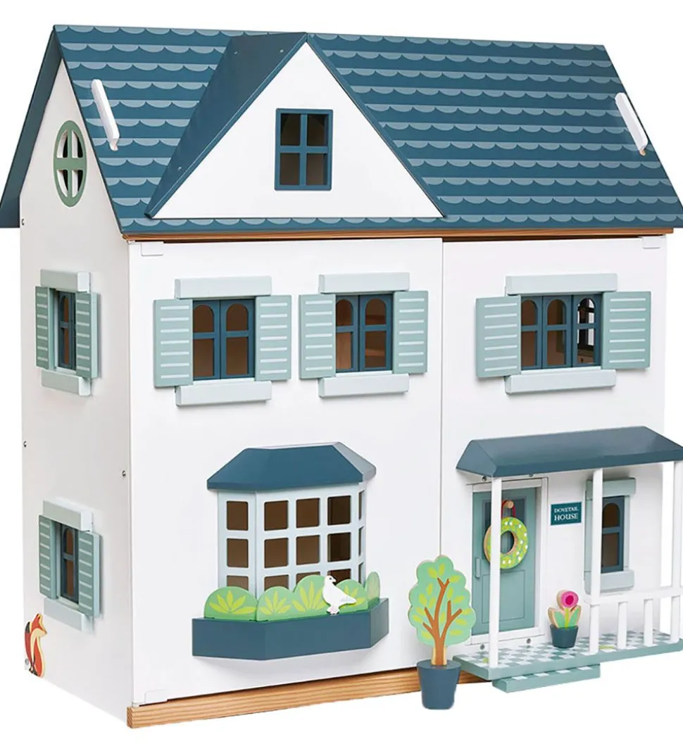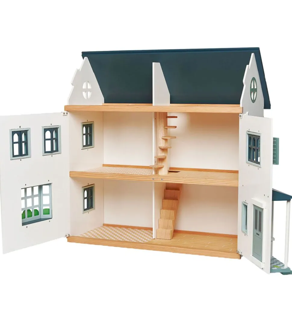 Pænt Tender Leaf trælegetøj i naturlig træ og fine farver formet som et stort dukkehus.
