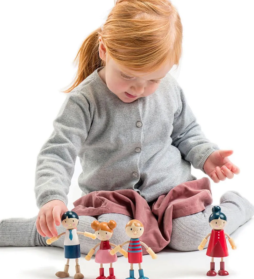 Tender Leaf trælegetøjet byder på mange timers underholdende leg, og det er med til at stimulere og udvikle barnets fantasi, finmotorik, sprog og kommunikation. Alle dukkerne har fleksible arme og ben, og de passer til husene og møblerne fra samme mærke.