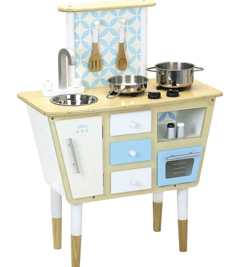 Flot Vilac legekøkken af træ med flotte vintage farver.